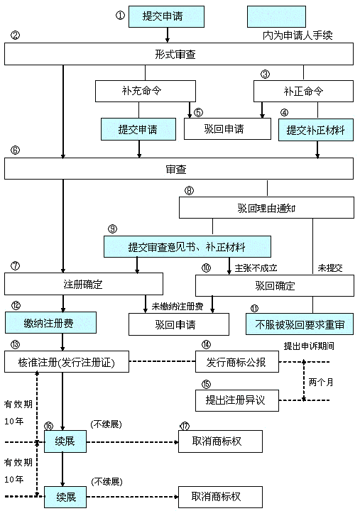 (16)核準(zhǔn)注冊(cè)日起10年后,可辦理有效期續(xù)展手續(xù)。(有關(guān)手續(xù)期限請(qǐng)參見(jiàn)〈續(xù)展〉)